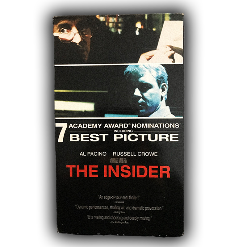 Step into the high-stakes world of corporate intrigue with The Insider (2000) on VHS, a gripping thriller that exposes the dark underbelly of the tobacco industry. This tense, award-winning drama follows whistleblower Jeffrey Wigand as he risks everything to reveal a devastating truth, with riveting performances by Al Pacino and Russell Crowe bringing the real-life story to electrifying life. Presented in its original VHS format, this collectible edition captures the authentic cinematic experience of early-2000s home viewing, complete with its classic packaging and nostalgic charm. A must-have for film aficionados and collectors, The Insider on VHS delivers suspense, drama, and a powerful ethical reckoning—right from the comfort of your own living room.