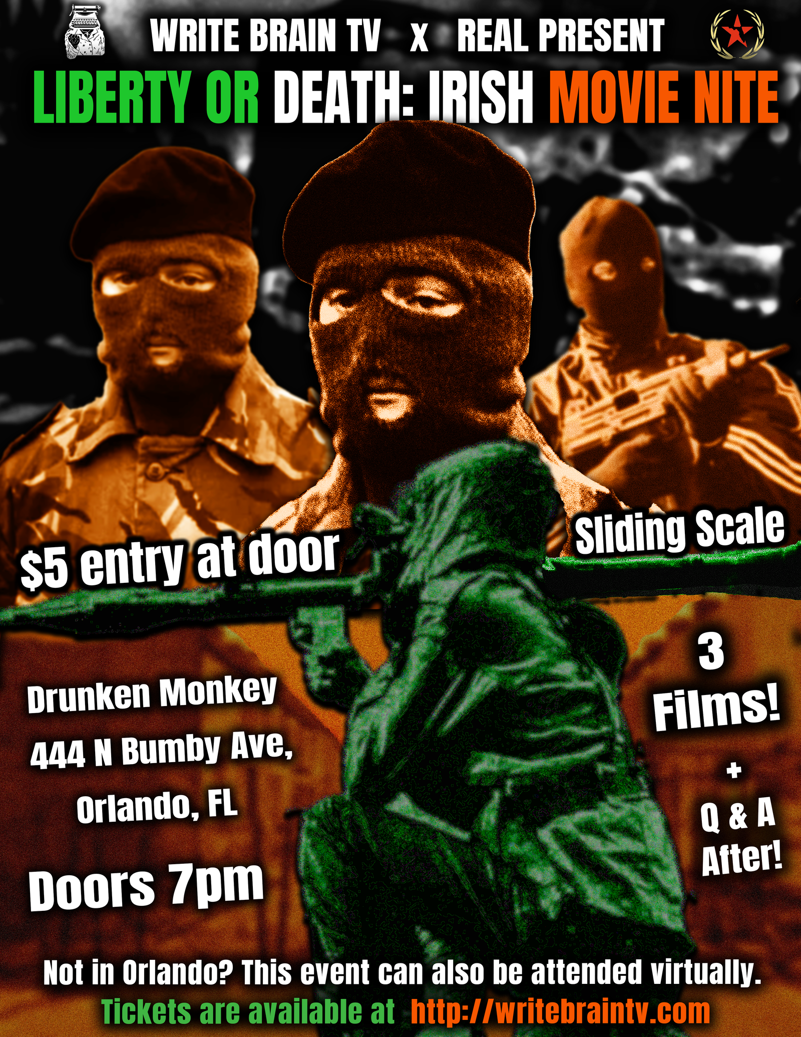 “Give Me Liberty Or Give Me Death!” is the motto for the epic 1st collaboration of the year between Write Brain TV & Real – an Orlando-based revolutionary activist group – delivering a triple threat of dangerous Irish cinema capturing their decade-long struggle for independence against oppressive the British empire on their own terms. Featuring a documentary the BBC tried to bury before the film stock was rediscovered recently that granted a filmmaker unprecedented access in the 70’s to the IRA to a pair of opening films adding different textures & dimensions to the dangerous struggle Ireland has been locked in since their near-imprisonment in the impoverished British-occupied slums known as “The Troubles” this is a cinematic experience you won’t wanna miss!